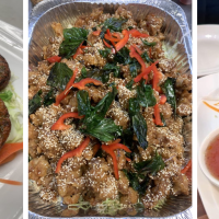 This sizzling coconut crepe dish is a traditional favorite, with tofu and bean sprout. Served with lettuce, basil, and side sweet and sour homemade soy sauce.