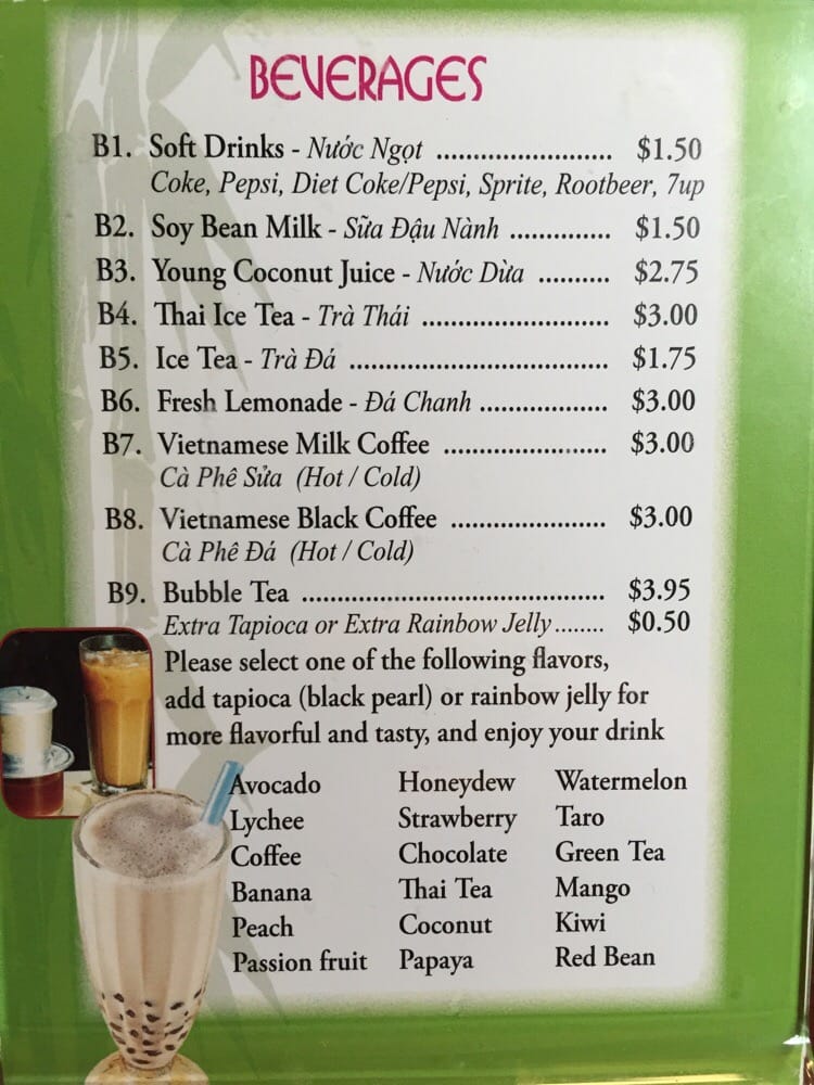 Vietnamese noodle soup with thinly sliced steak. Options for regular or large sizes.
