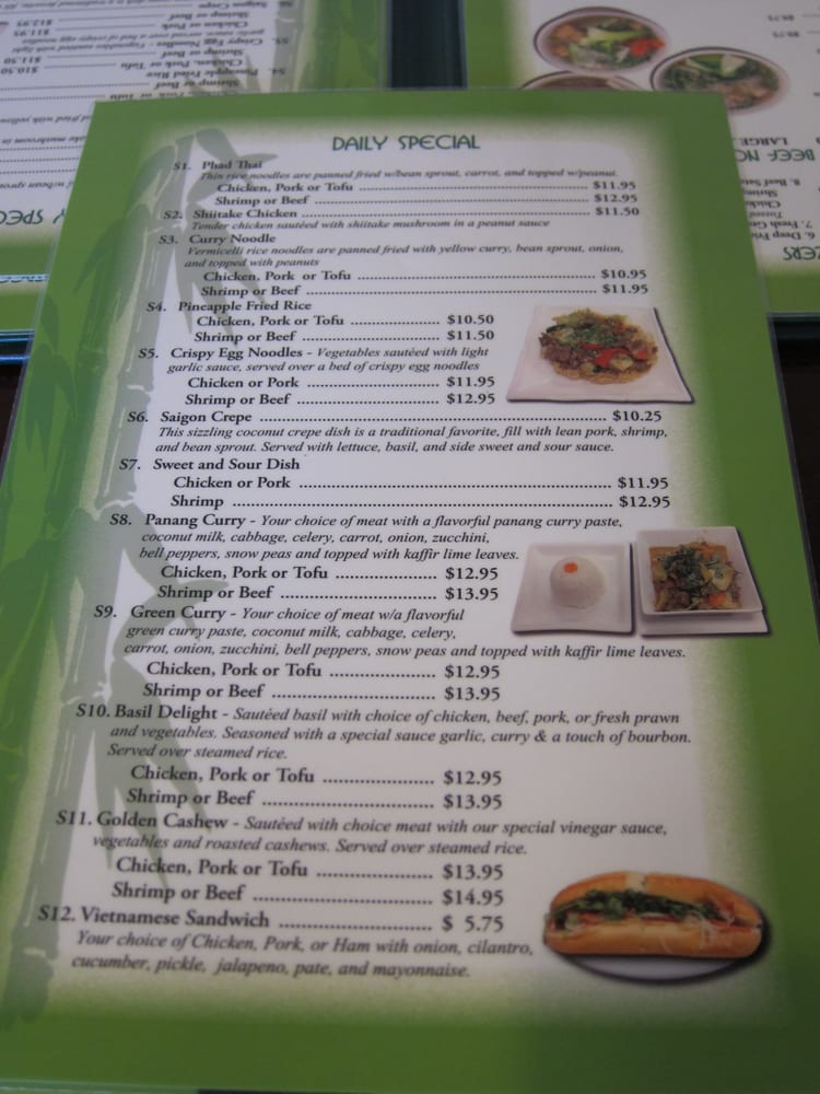 Your choice of meat w/a flavorful green curry paste, coconut milk, cabbage, celery, carrot, onion, zucchini, bell peppers, snow peas and topped with kaffir lime leaves.